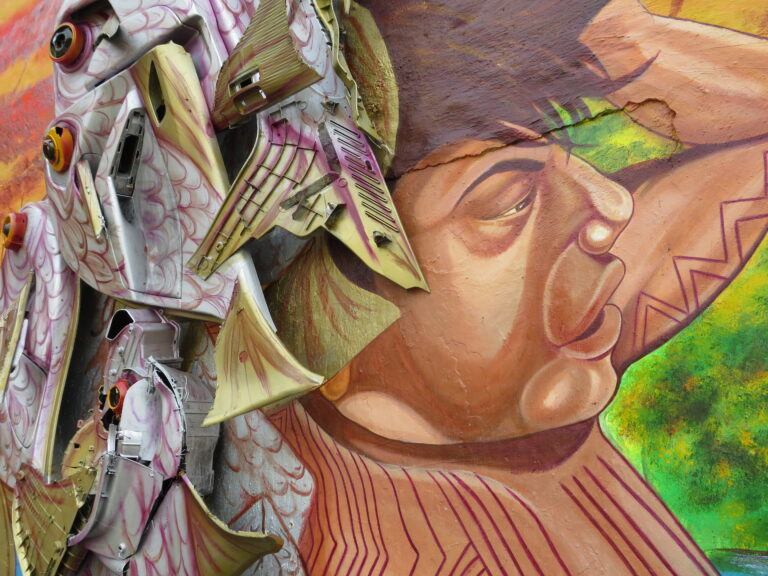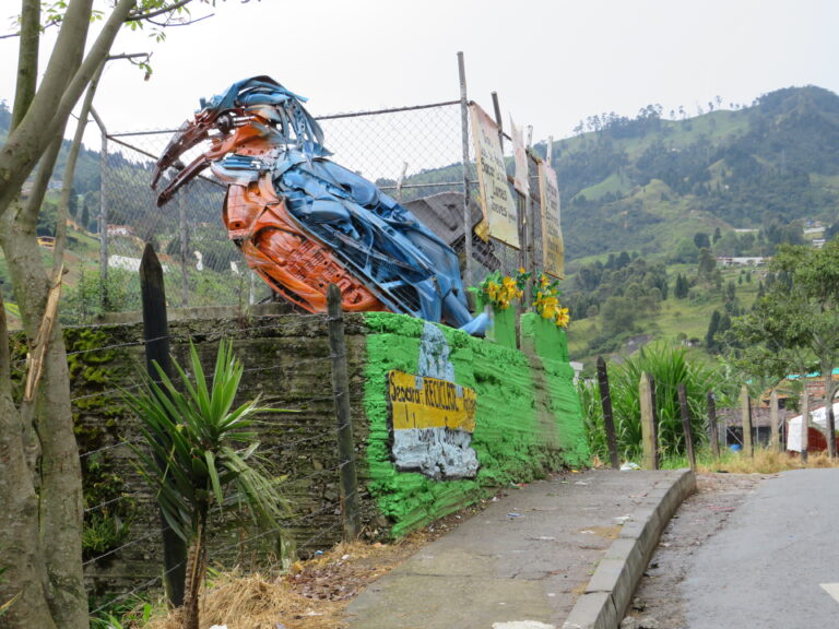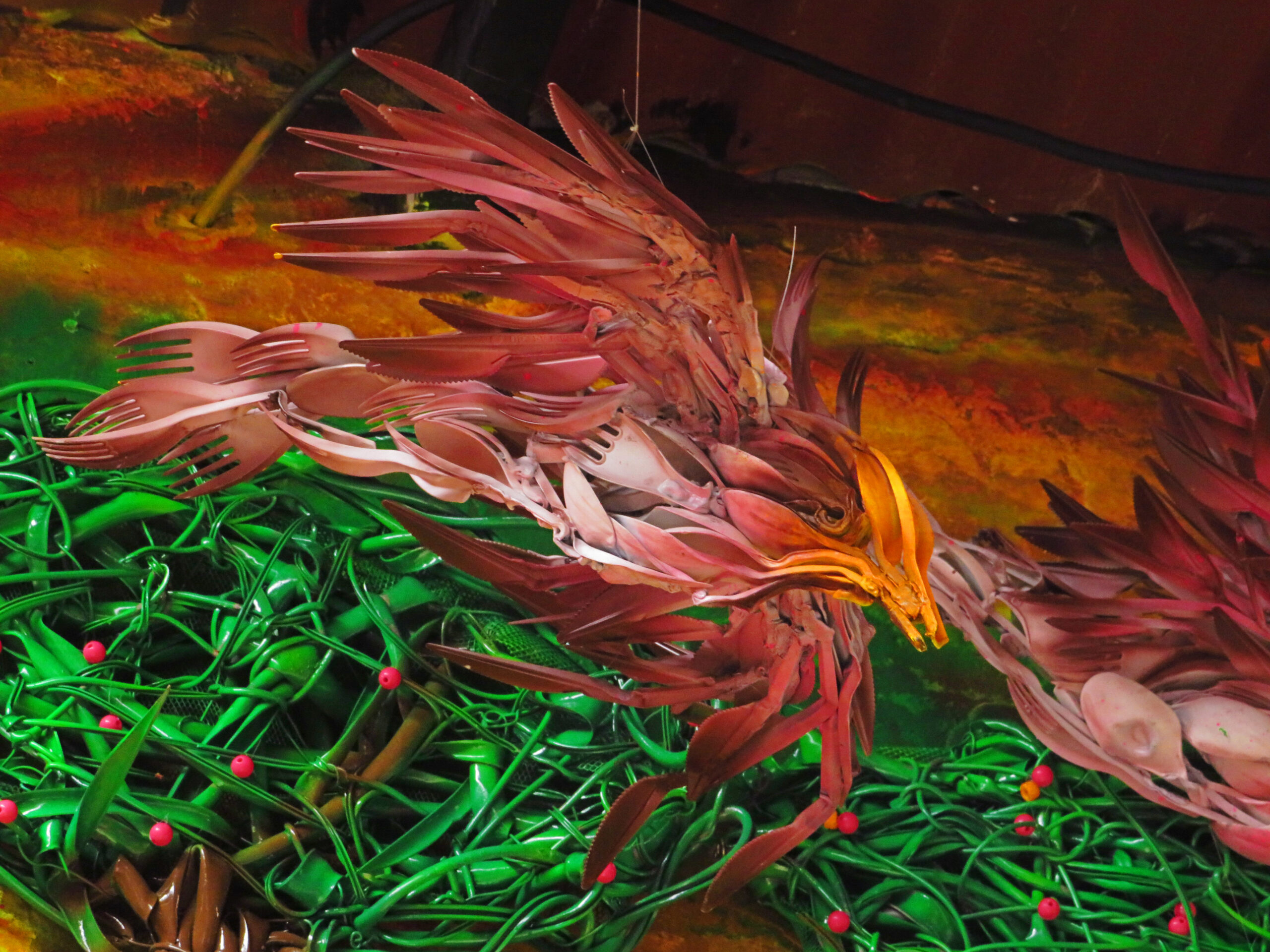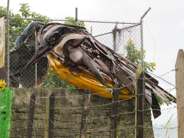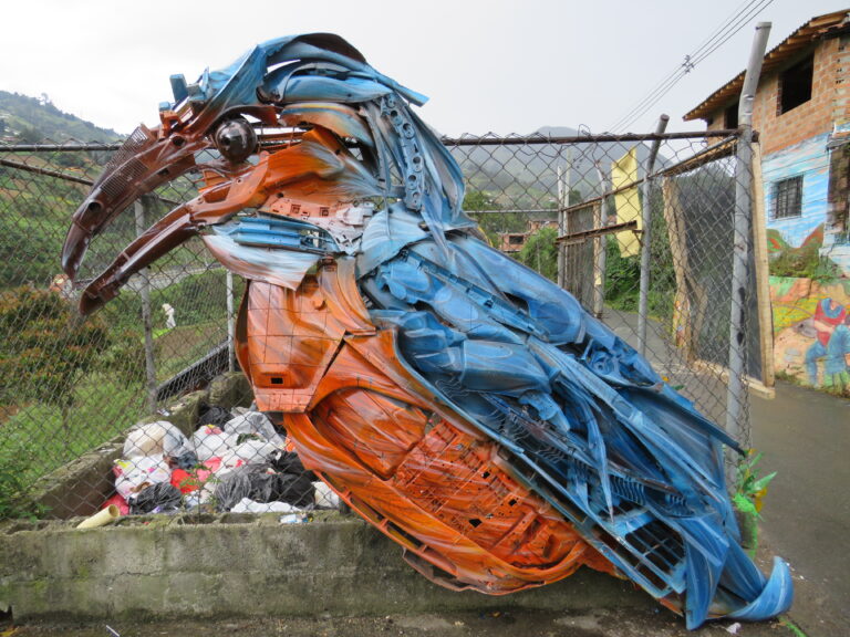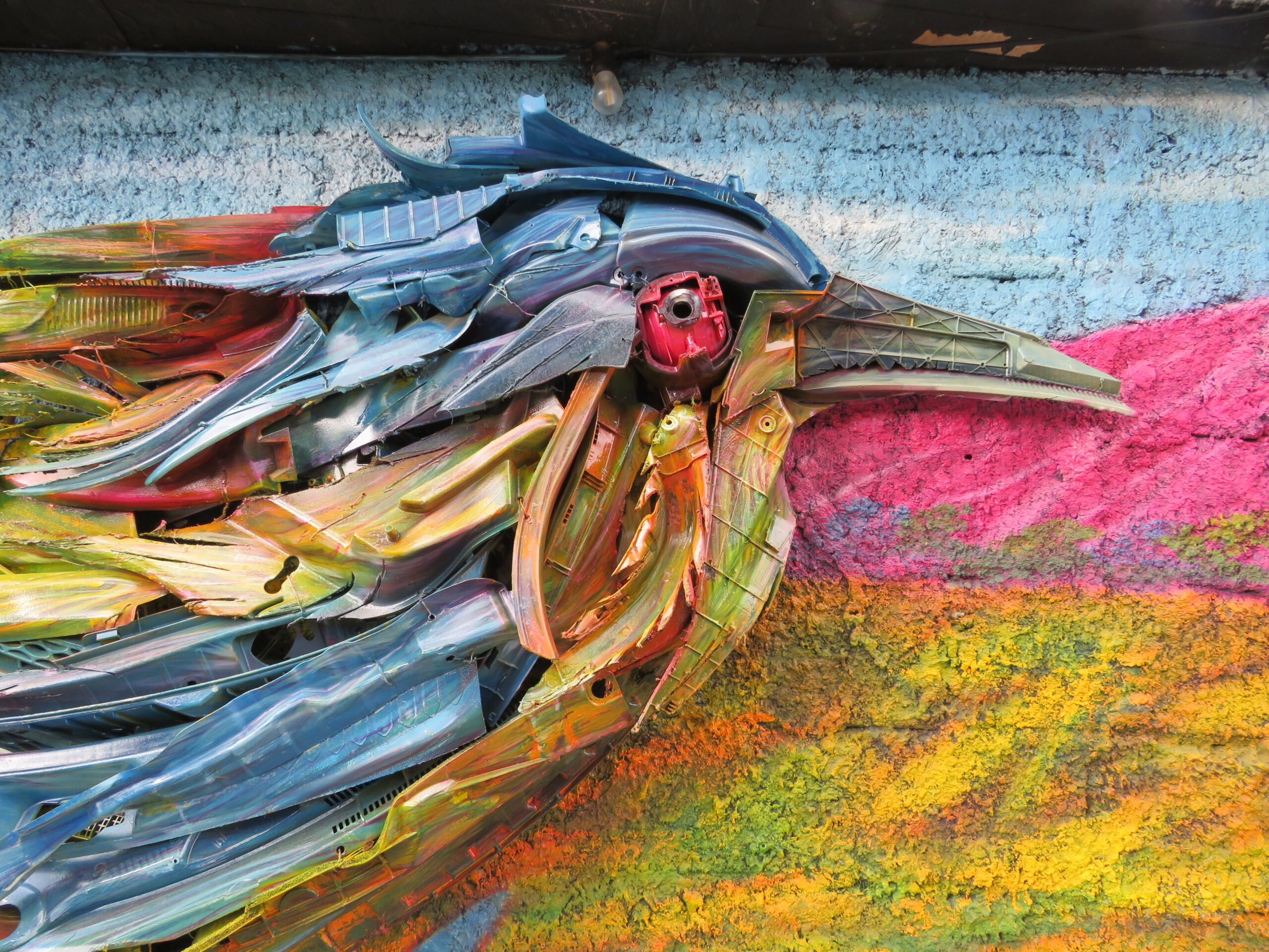 Detalle: Este trabajo incluye mural e instalación de dos piezas escultóricas hechas en plástico automotriz desechado