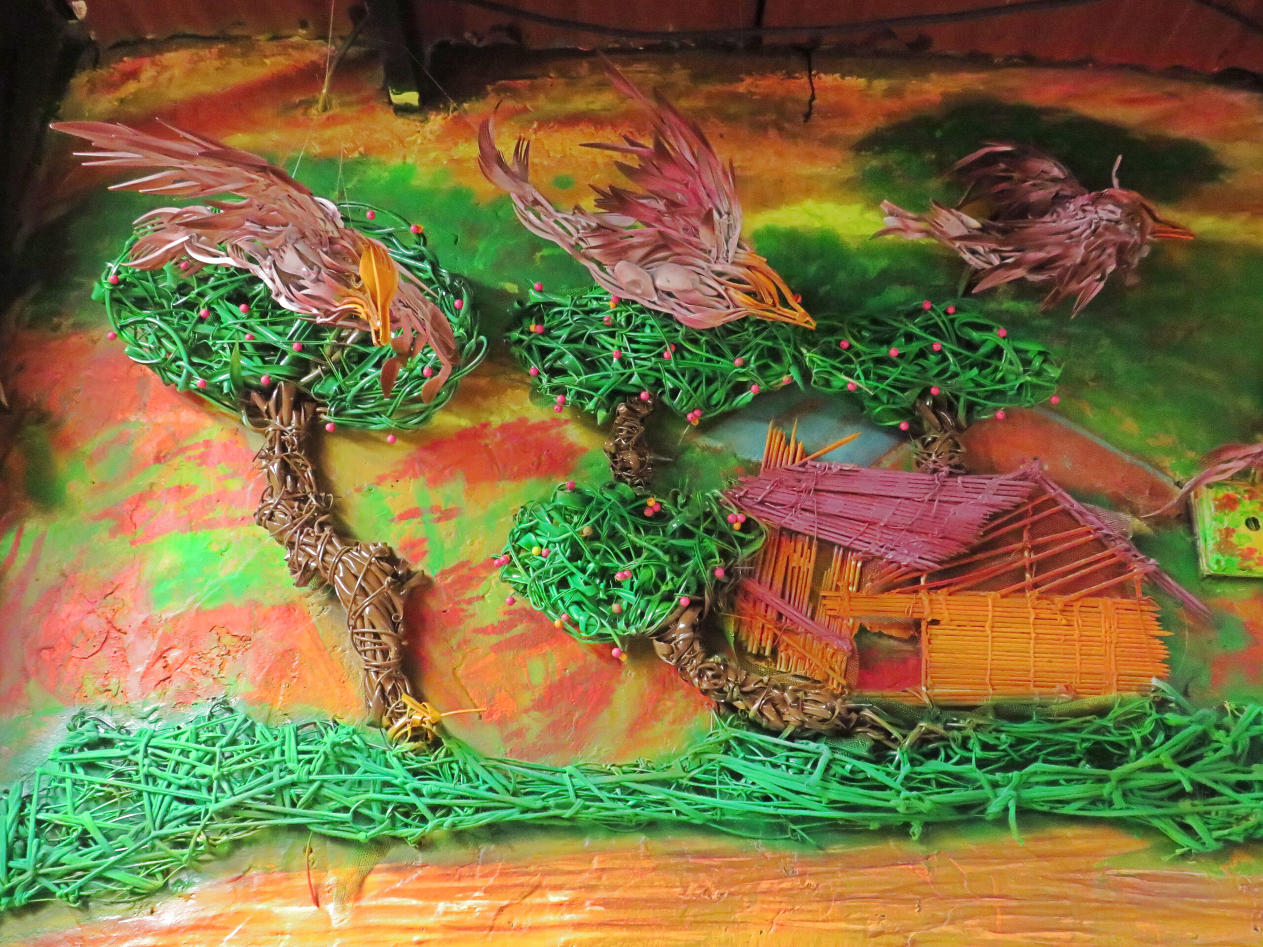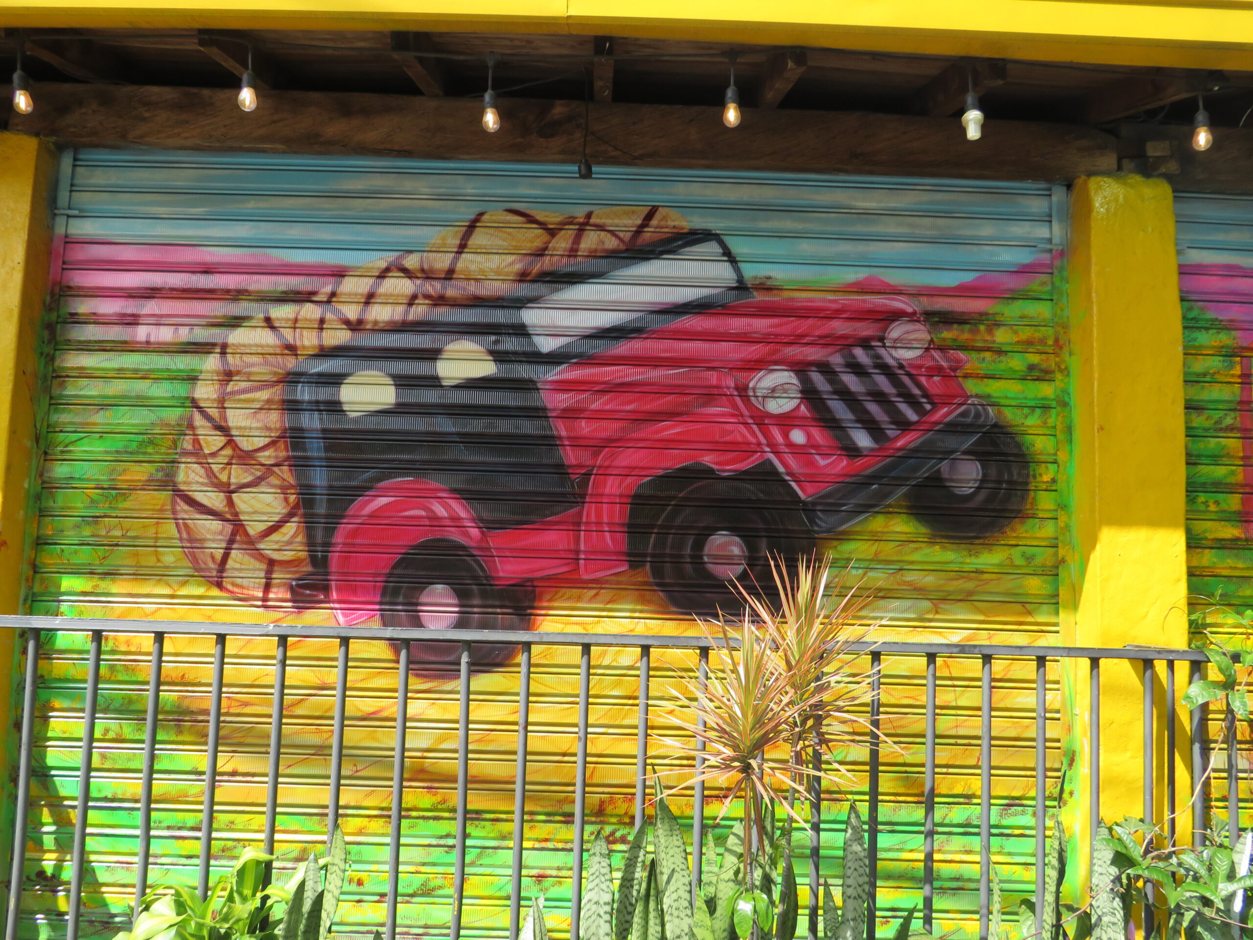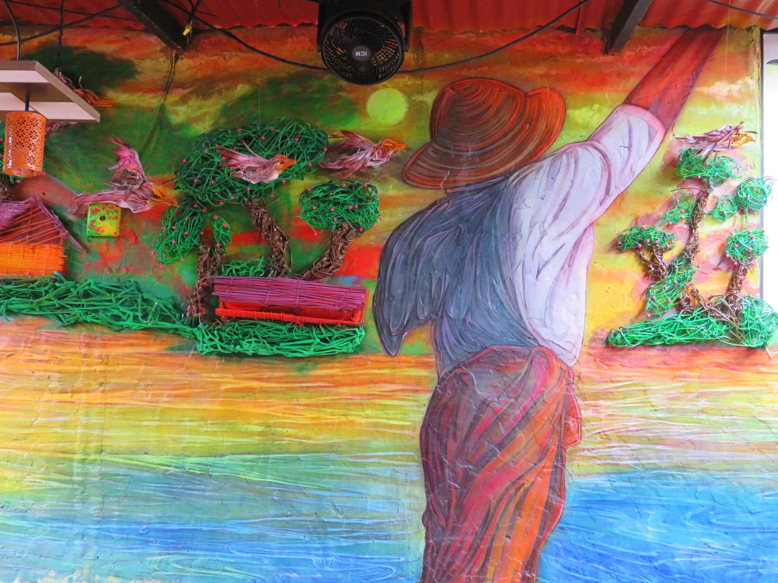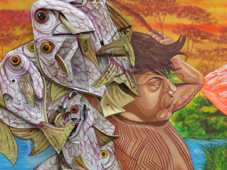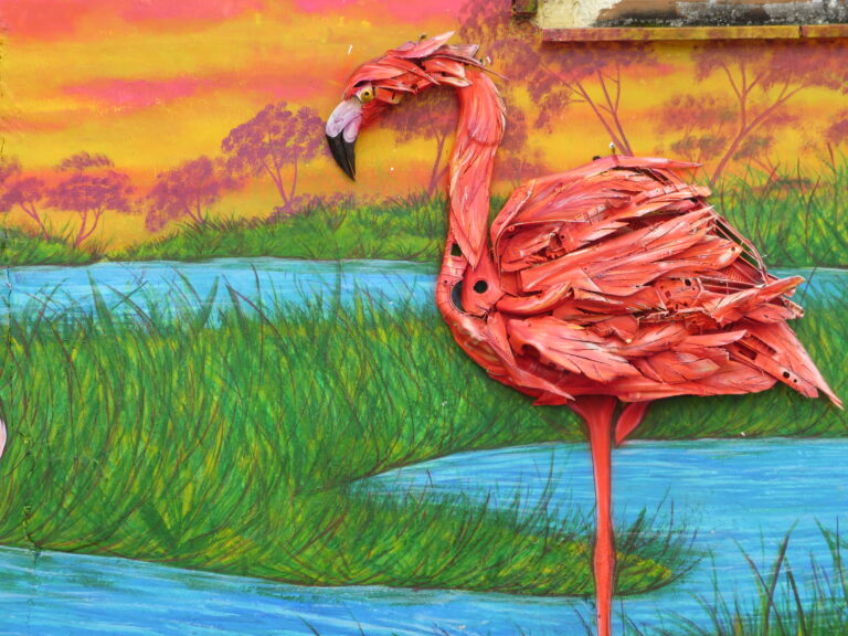Detalle: Este trabajo incluye mural e instalación de dos piezas escultóricas hechas en plástico automotriz desechado