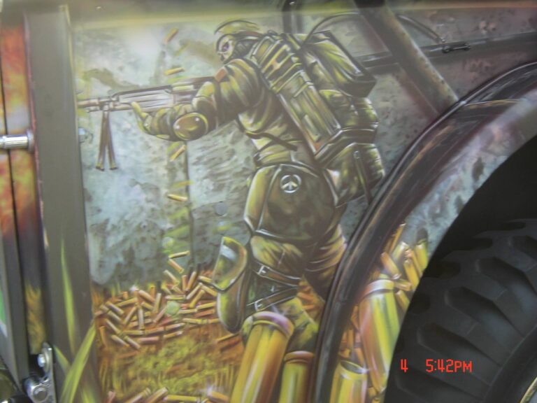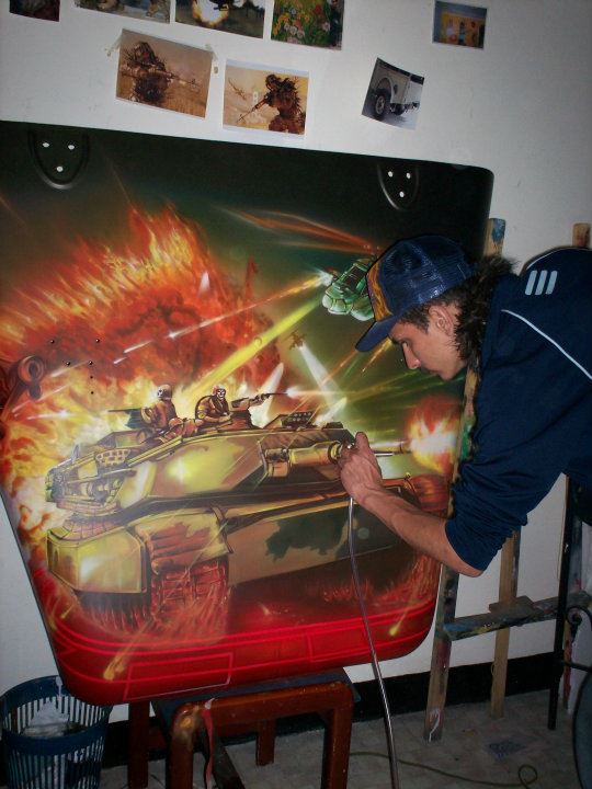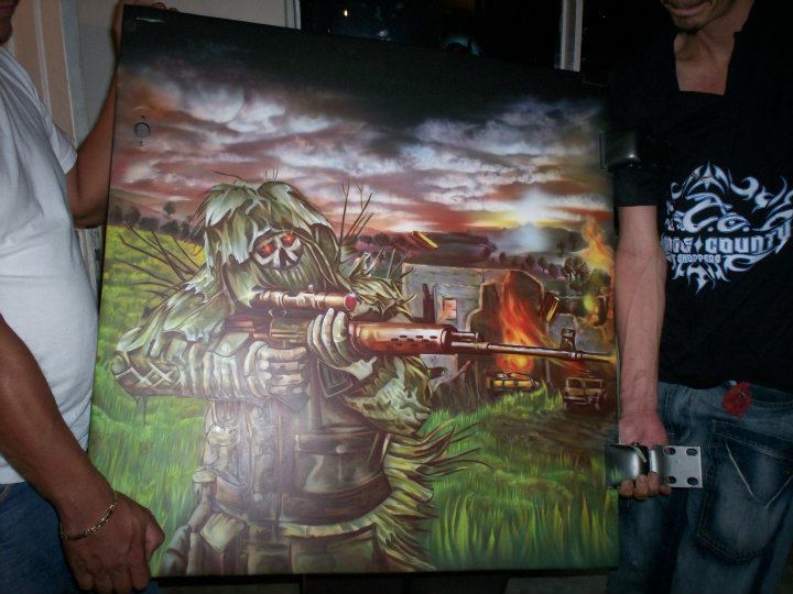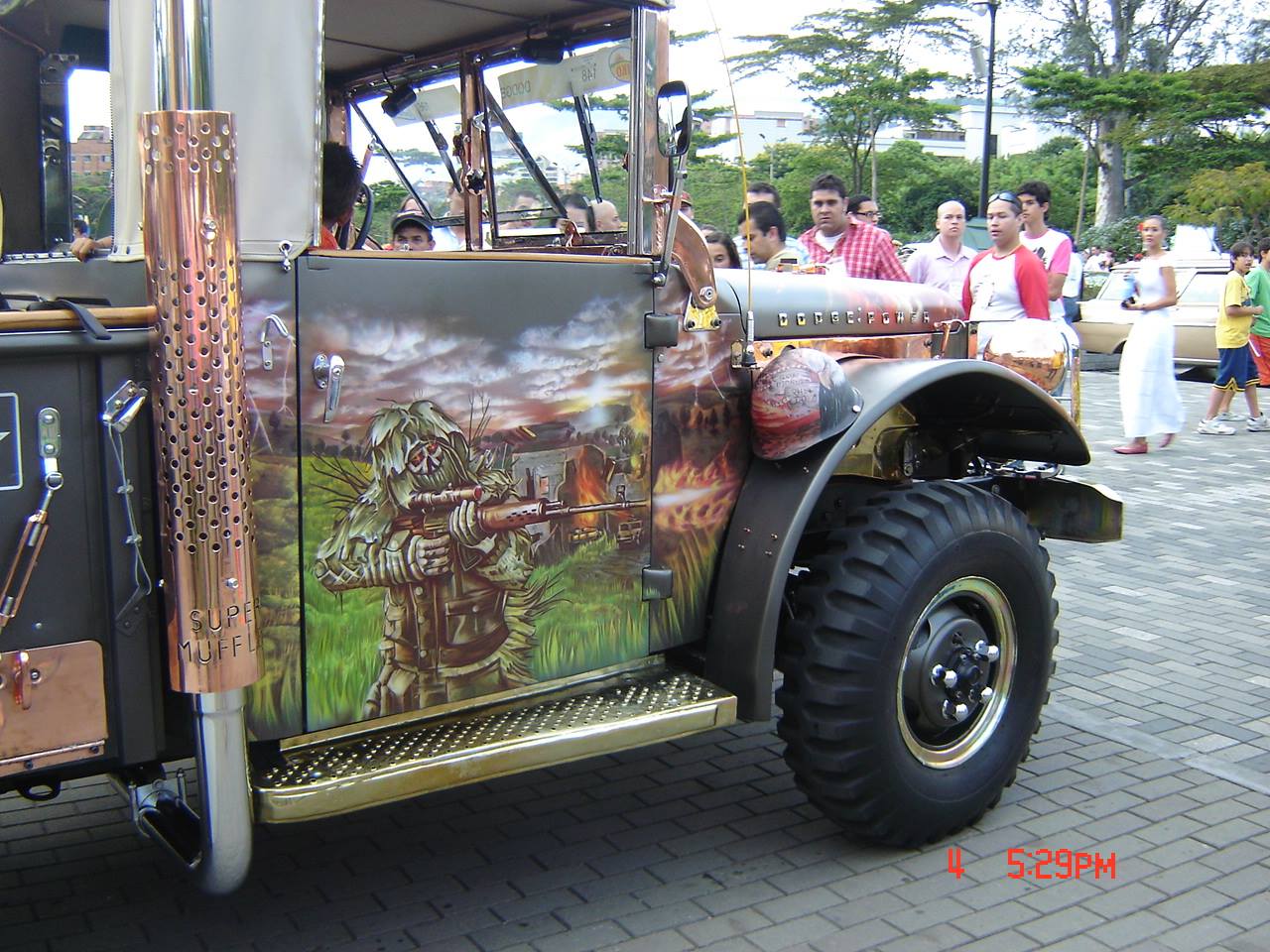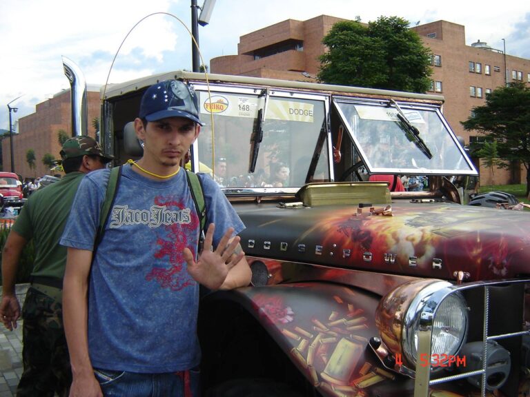 Sr. Matanza Descripción: Aerografía automotrizDimensión: el tamaño de un camiónAño: 1997Nota: Este auto hacia parte de los desfiles de auto antiguos en el marco de la feria de flores, Medellín.